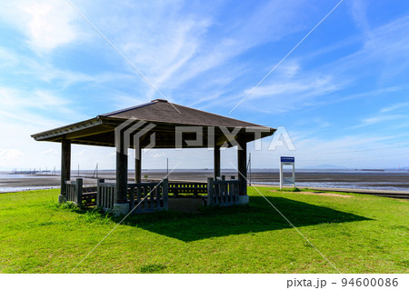 海の中を歩く長部田海床路(ながべたかいしょうろ)からのパノラマ風景