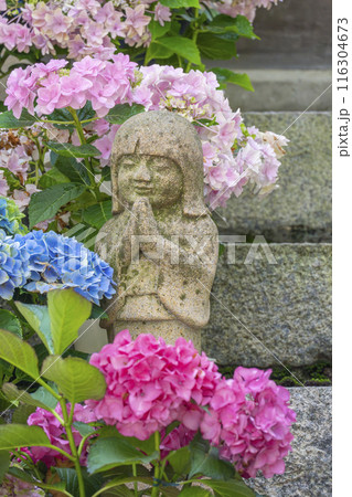 壷阪寺 大釈迦如来石像と紫陽花