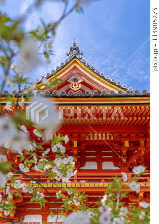 春の京都 仁和寺 春の花と鐘楼