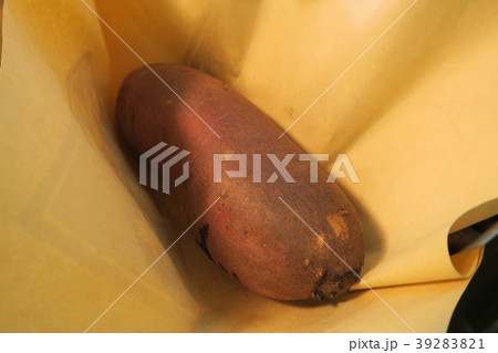 新聞紙で作った袋に入った石焼き芋 筆描き・マット塗り