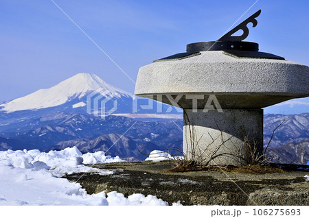 丹沢山地 塔ノ岳山頂の方位盤に富士山