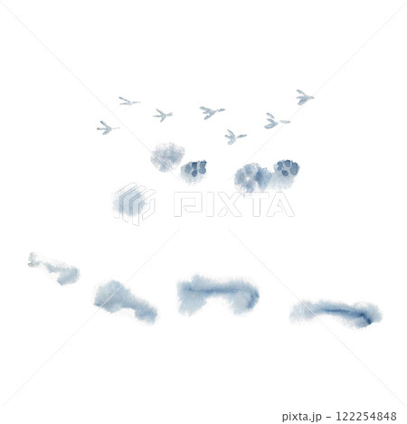 Bird, animal, human footprints in snow watercolor set isolated on white. Hand painted outdoor illustration for national park products, ads, cards, banners, invitations, guides, stickers decor and