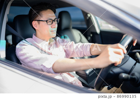 若い 綺麗 女性 自動車 車 運転 シートベルト 安全 人物 素材