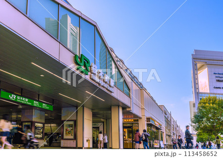 日本の横浜都市景観 相鉄横浜駅や横浜市営地下鉄横浜駅、パルナードSTなどを望む