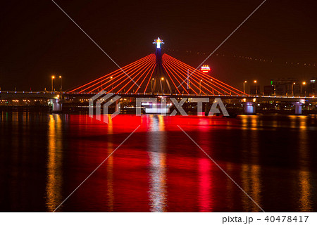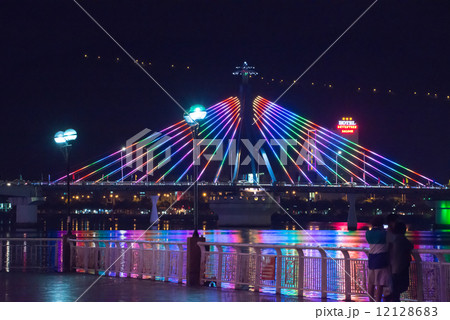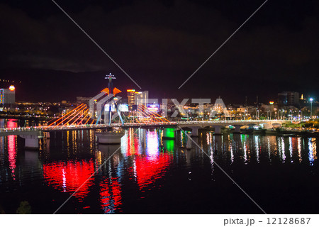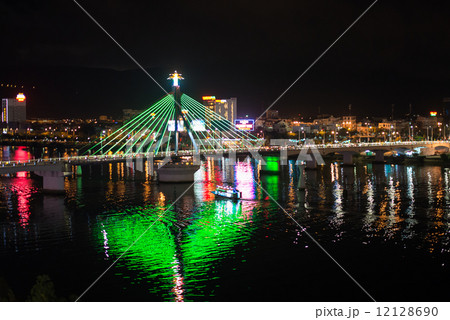 旋回橋 ハン橋 ベトナム、ダナン イルミネーション 夜間照明