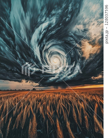 Dramatic Swirling Clouds over Golden Wheat Field Landscape Photography Nature sky art view dark