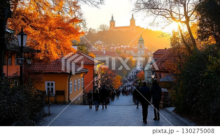 The Serene Evening Streets are adorned with a Vibrant Sunset Sky which captivates the heart