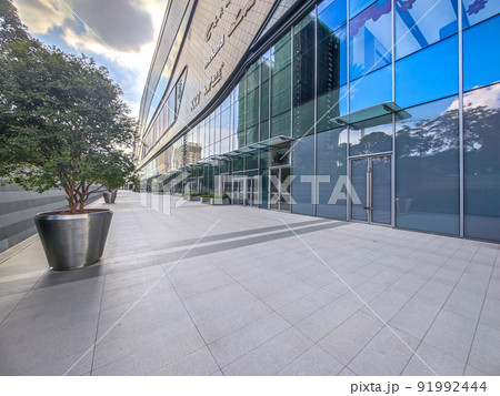 無人磚地與現代建築玻璃牆外立面廣場空間