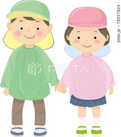スモック姿で手をつなぐふたりの園児