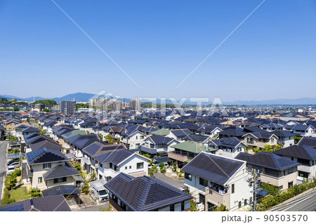 日本の川崎都市景観 東急電鉄 溝の口駅前や太陽光パネルなどを望む