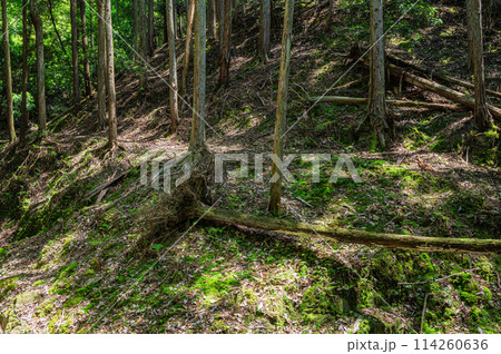 木漏れ日射す新緑の雑木林 京都府宇治市