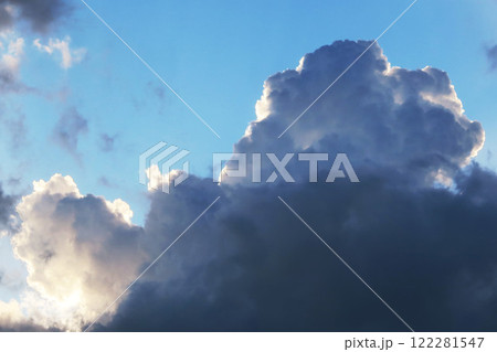 暗雲も広がっている夕暮れの空の迫力ある雲の風景