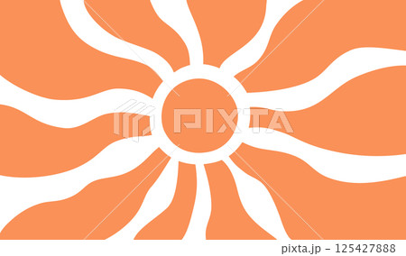 Yellow sun rays psychedelic background. Wavy rays in groovy style. Abstract sun burst poster. Psychedelic texture. 70s, 80s design. Radial wave lines. Vector illustration isolated on white background
