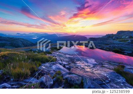 Vibrant Sunset Over Mountainous Landscape