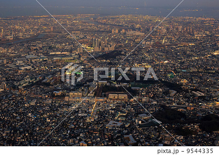 日本の横浜都市景観 市営地下鉄グリーンライン 日吉駅などを望む