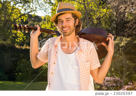 Handsome man playing the guitar