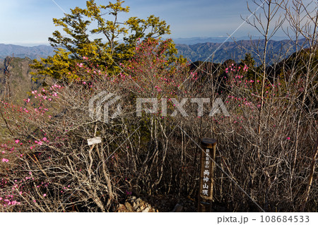 アカヤシオツツジ咲く早春の両神山山頂