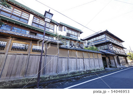 日奈久温泉の古い町並みと青空 (熊本県八代市)