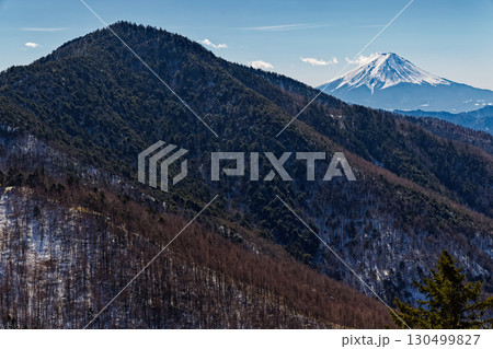 大菩薩・石丸峠への登りから見る富士山と小金沢山