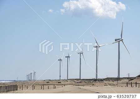 茨城県柳川海岸 風力発電の風車を見上げる風景