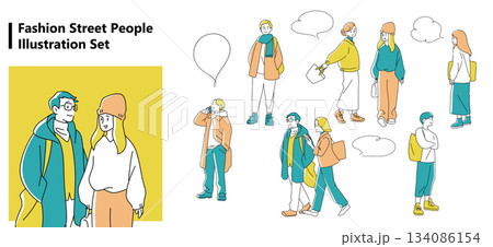 東京の春ファッションスナップ イラストセット 全身人物コーデ集