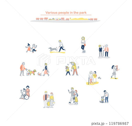 それぞれのライフスタイルで生きる人々 シンプルでお洒落な手描きイラスト