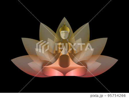 Sitting Buddha over lotus flower. Esoteric vector illustration. Vintage decorative culture background. Modern stylized drawing. Indian, Buddhism, spiritual art. Tattoo, spirituality, Thai god, yoga