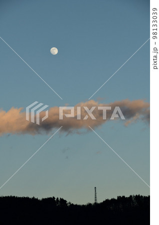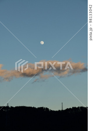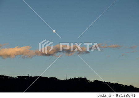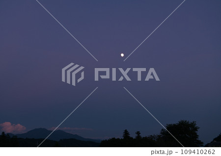 北杜市白州町、夕空に昇った月齢11.7の月