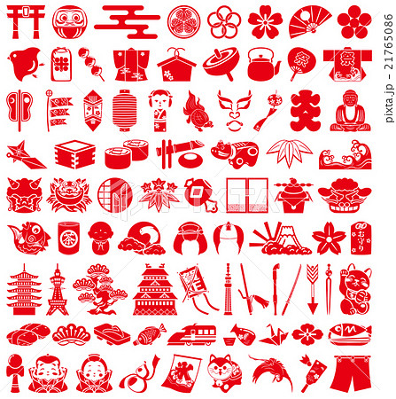日本の縁起物アイコンセット 正月・年賀状・和風のデザインアイテム
