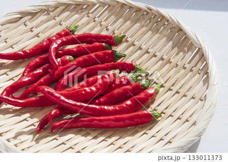 冬の窓辺で乾燥する唐辛子