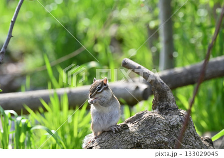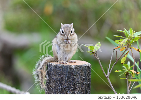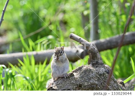 切り株の上で過ごす可愛いシマリス