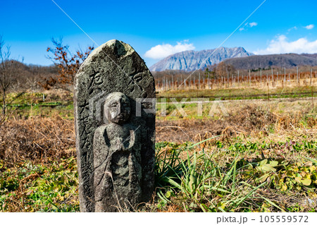 【日本百名山】笠良原の道標地蔵と冬晴れの大山1 鳥取県日野郡江府町