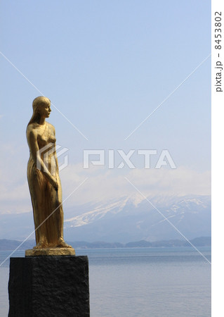 田沢湖と辰子像
