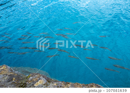 田沢湖を泳ぐウグイの群れ