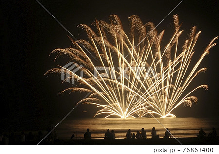 満天に舞う黄金の花火の饗宴