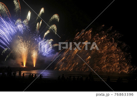 夏の夜空に打ち上がる華やかな花火の競演
