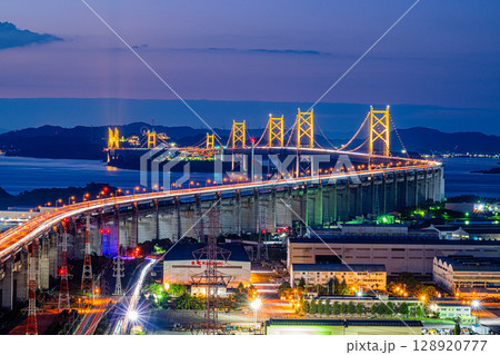 夜の瀬戸大橋と光の軌跡
