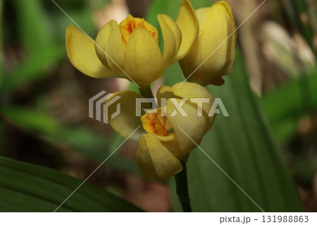 木漏れ日に咲くキンラン(キンラン)/ Golden Orchid in Forest Light