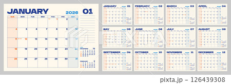 2026年の年間カレンダー EPSとPNGで全面にお気に入りの画像やイラストを配置できます