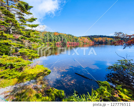 秋の世界遺産白神山地 紅葉の十二湖 落口の池