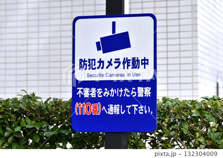 日本の横浜都市景観 街角の防犯カメラ作動中 不審者を見かけたら警察(110番)へ通報して下さい。