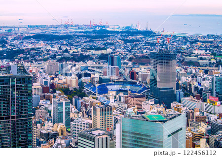 日本の横浜都市景観 横浜スタジアムや関内駅前のベースゲート横浜関内タワーなどを望む=令和7年1月