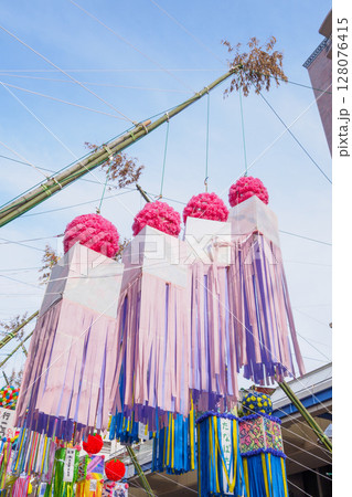 日本の横浜都市景観 横浜大さん橋に接岸した航海練習船「大成丸」やみなとみらいの街などを望む=28日