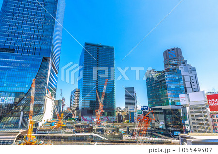 日本の東京都市景観 渋谷駅南口橋上駅舎新築工事(仮称)などを望む
