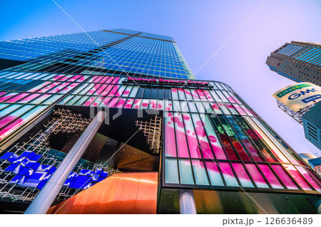 日本の東京都市景観 希望の光。脱コロナへ…窓ガラスに映り込むビル群。渋谷・万華鏡都市…輝く明日へ