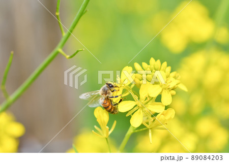 菜の花 日本ミツバチ 蜜蜂 みつばち ミツバチ 二ホンミツバチ 春 季節 生物