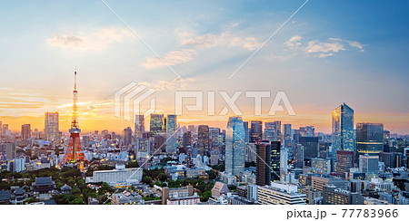 Cityscape of Tokyo skyline, panorama aerial skyscrapers view of office building and downtown in Tokyo in the evening.