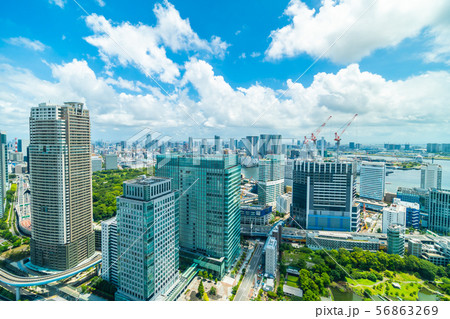 Cityscape of Tokyo skyline, panorama aerial skyscrapers view of office building and downtown in Tokyo on a sunny day.