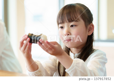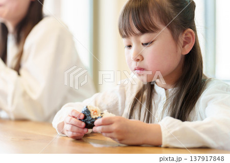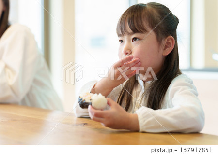 おにぎりを食べる女の子