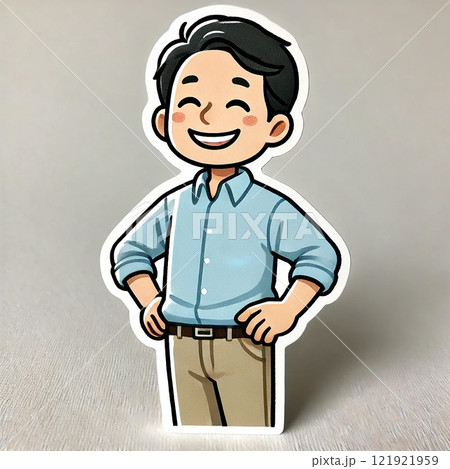 笑顔で自信を持つカジュアルな男性キャラクターのイラスト
